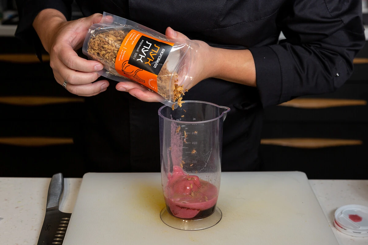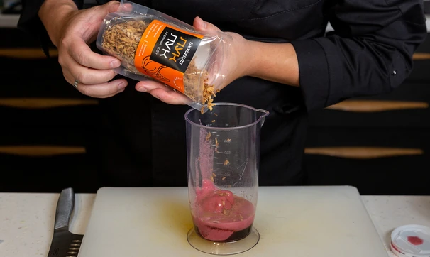 Добавьте немного подтаявший сорбет (25 г), орегано и 1/3 ч. л. соли. Перемешайте до соединения компонентов.