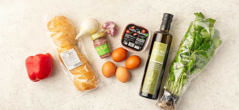 В рецепте используются товары из категорий: Молочные продукты, яйцо; Овощи, фрукты, ягоды, зелень; Консервация; Масла, соусы, специи, сахар и соль