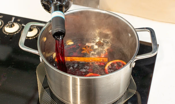 Классический рецепт глинтвейна — любимого многими согревающего напитка. Чтобы сделать его более насыщенным, мы предлагаем сначала прокипятить специи в воде, а потом только добавлять вино.