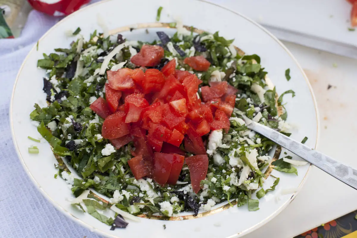 Зелень используйте самую разную, вплоть до дикорастущей сныти и щавеля, чем больше пряных трав вы используете — тем более интересным будет вкус, экспериментируйте!