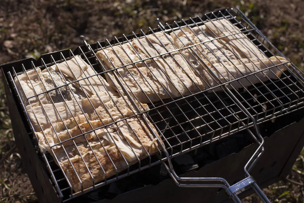 Конверты выложите на решетку для мангала, прижмите верхней частью решетки. Жарьте с двух сторон на горячих углях до золотистого цвета — ешьте сразу!