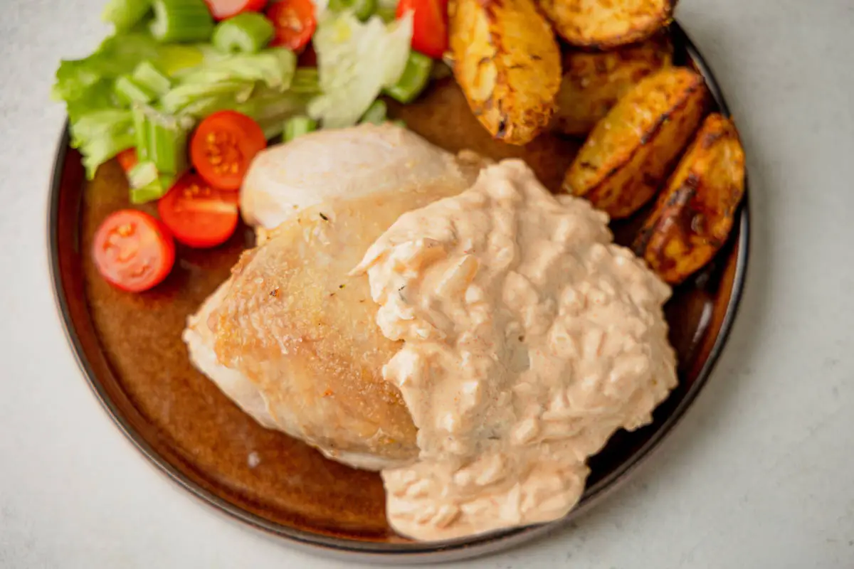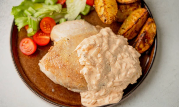 Такой горячий сметанный соус особенно хорошо подходит к куриной грудке, добавляя ей насыщенности и сочности.