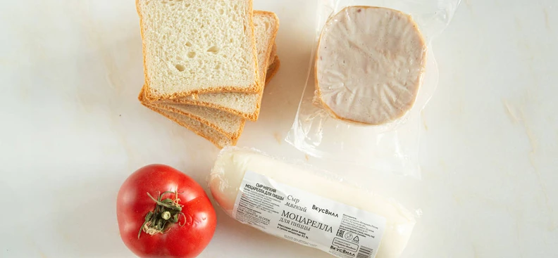 В этом рецепте можно использовать не только куриный рулет, но и грудку-сувид, любую ветчину или даже варёно-копчёную колбасу. А может быть, у вас осталось немного запечённой говядины или птицы от ужина? Всё это прекрасно подойдёт! А моцареллу можно заменить любым хорошо плавящимся сыром — очень хорош будет здесь сулугуни, например.