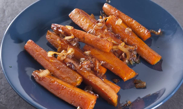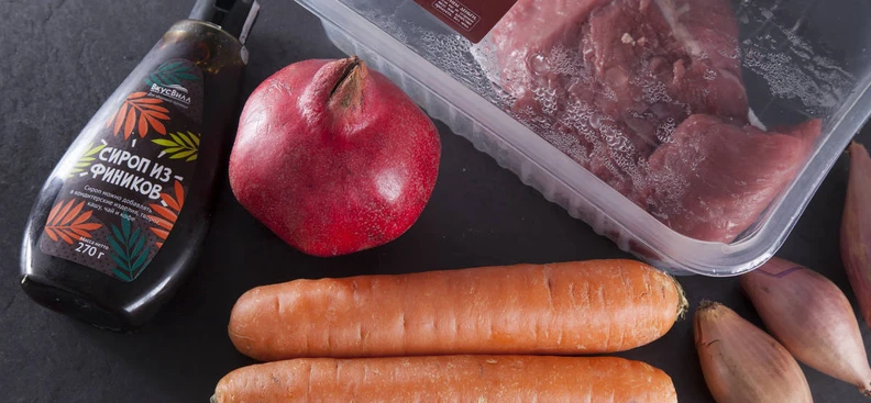 Говядина с карамелизированной морковью и гранатом