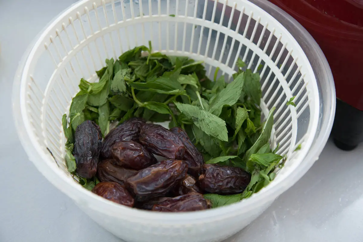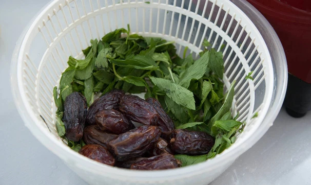Зеленую гречку сначала нужно немного прорастить. Замочить на 8 часов или на ночь, промыть. Подготовленную гречку смешать с мятой или мелиссой и финиками в блендере до однородности.