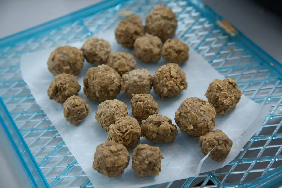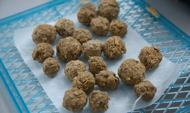 Шарики вновь положите на противень или лист дегидратора и немного подсушите. Пока "тесто" подсушивается, приготовим крем, белый и темный.