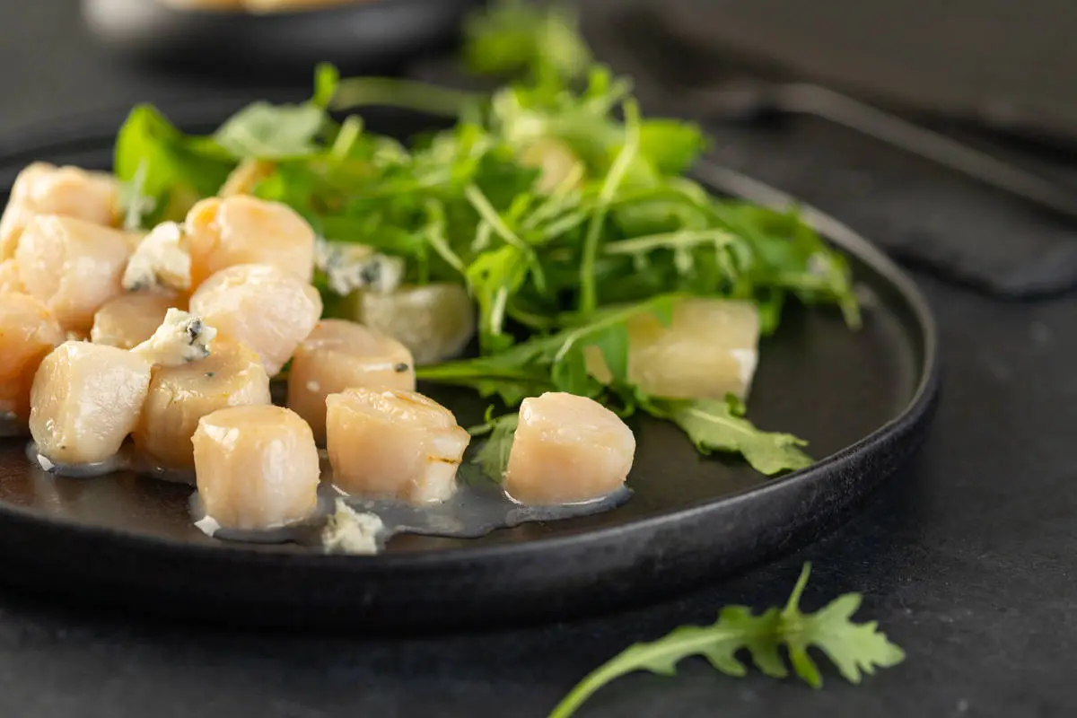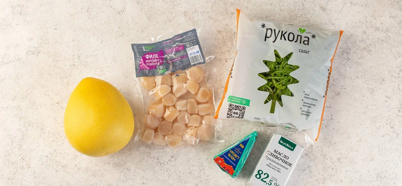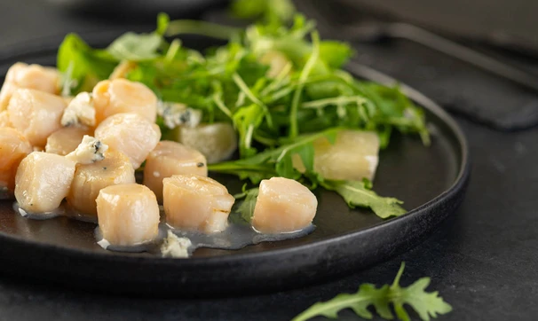 Гребешки с помело и голубым сыром