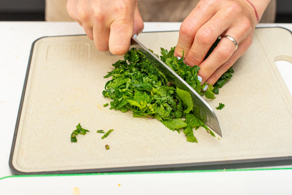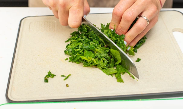 Листья мяты оборвите со стеблей и измельчите.