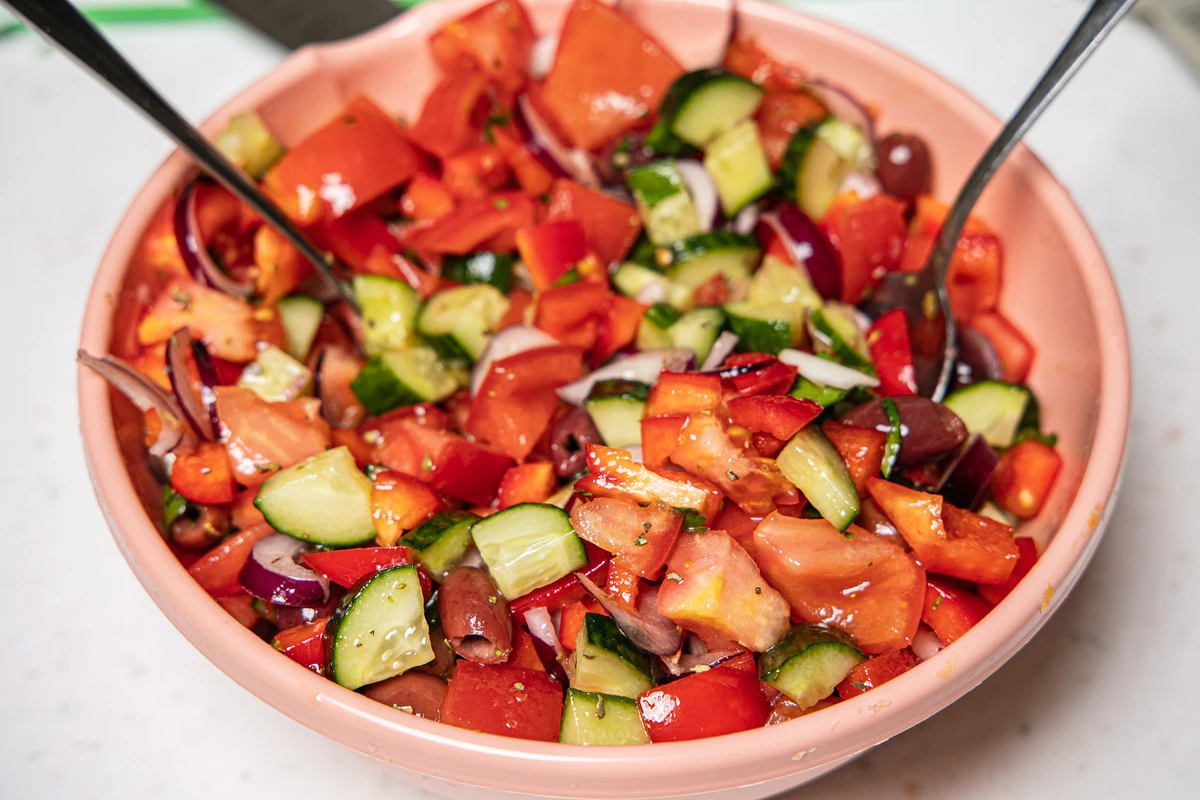 Вкус греческого салата очень сильно зависит от качества овощей. Поэтому выбирайте самые спелые сезонные помидоры, хрустящие огурцы, сладкий лук и качественное ароматное оливковое масло.