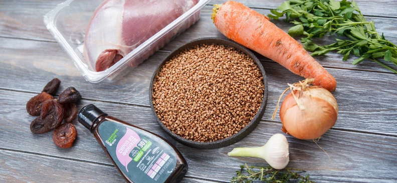В рецепте используются товары из категорий: Мясо, птица; Крупы, макароны, мука; Овощи, фрукты, ягоды, зелень; Масла, соусы, специи, сахар и соль