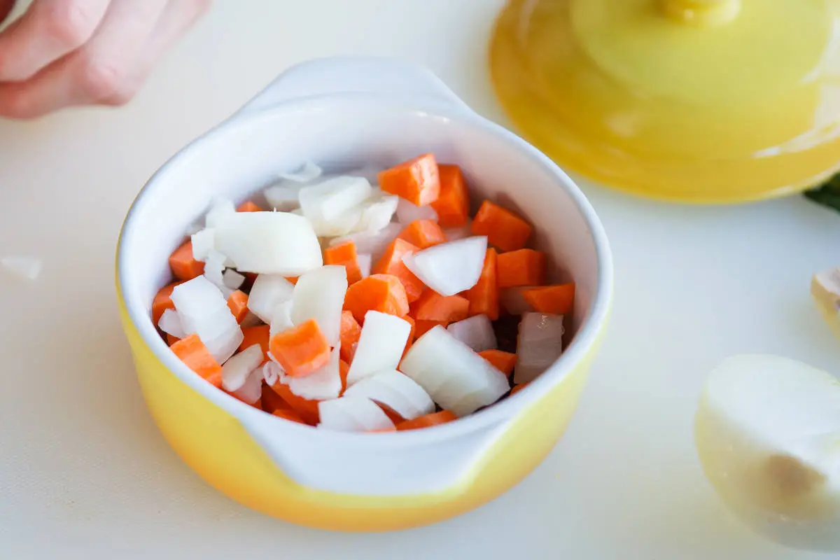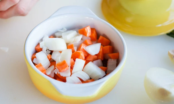 Морковь и лук очистите, нарежьте средними кубиками. Курагу нарежьте полосками.