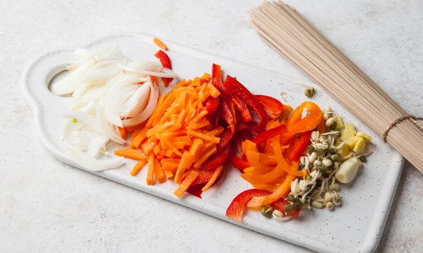 Гречневая лапша с овощами и тофу