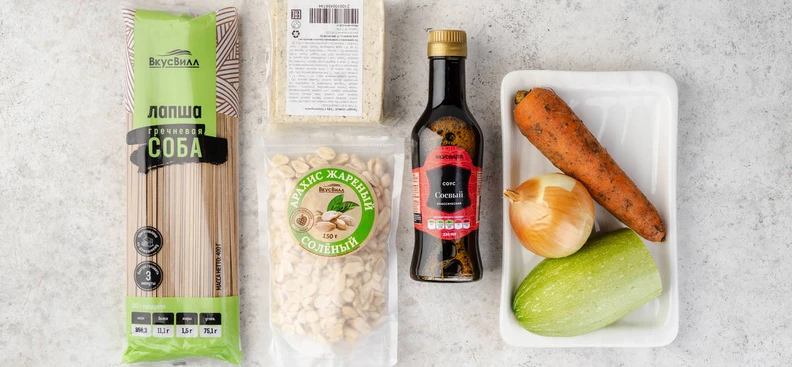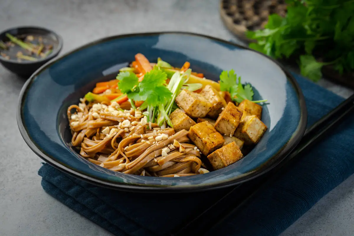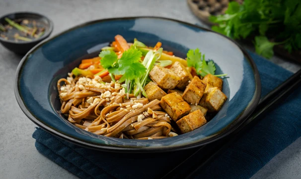 Гречневая лапша с тофу и овощами