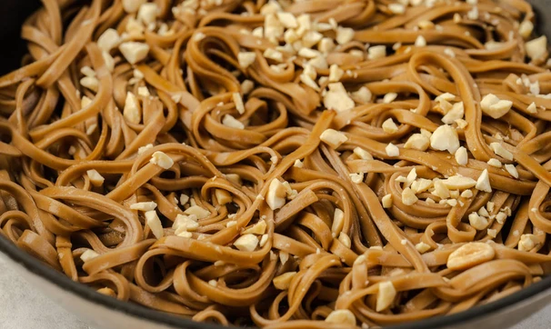 Паста для веганов на основе собы. Арахис и соевый соус придают ей азиатские нотки, делая вкус ярким.