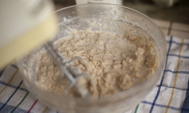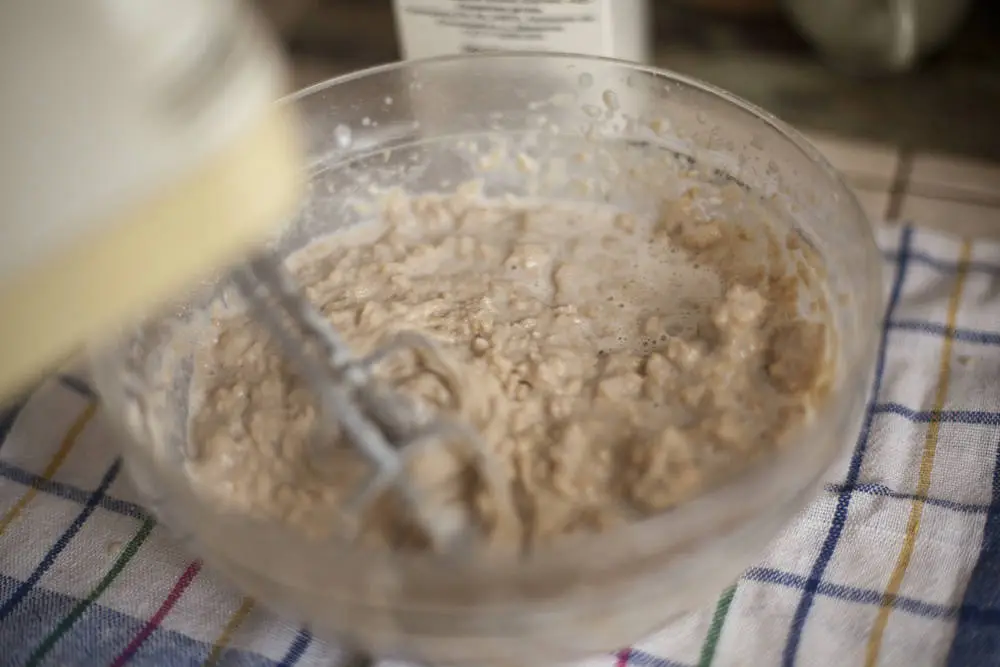 Вливайте горячее молоко, постоянно мешая (проще миксером), размешайте до однородной консистенции, процедите через сито и оставьте на полчаса.
