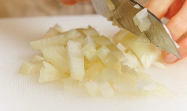 Лук и стебли сельдерея нарежьте кусочками среднего размера.