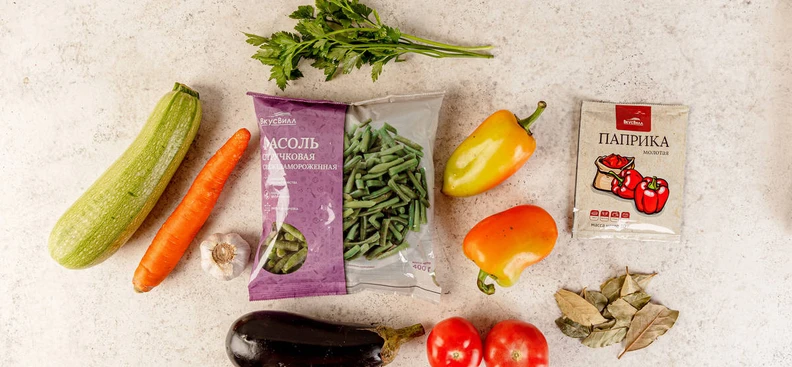 В рецепте используются товары из категорий: Овощи, фрукты, ягоды, зелень; Замороженные продукты; Масла, соусы, специи, сахар и соль; Молочные продукты, яйцо
