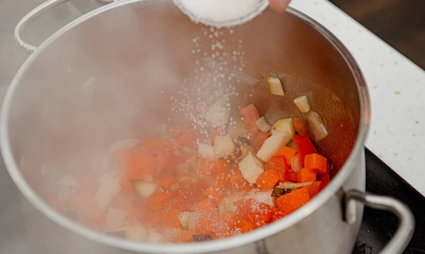 Затем убавьте огонь, накройте крышкой и тушите ещё 20-30 минут.