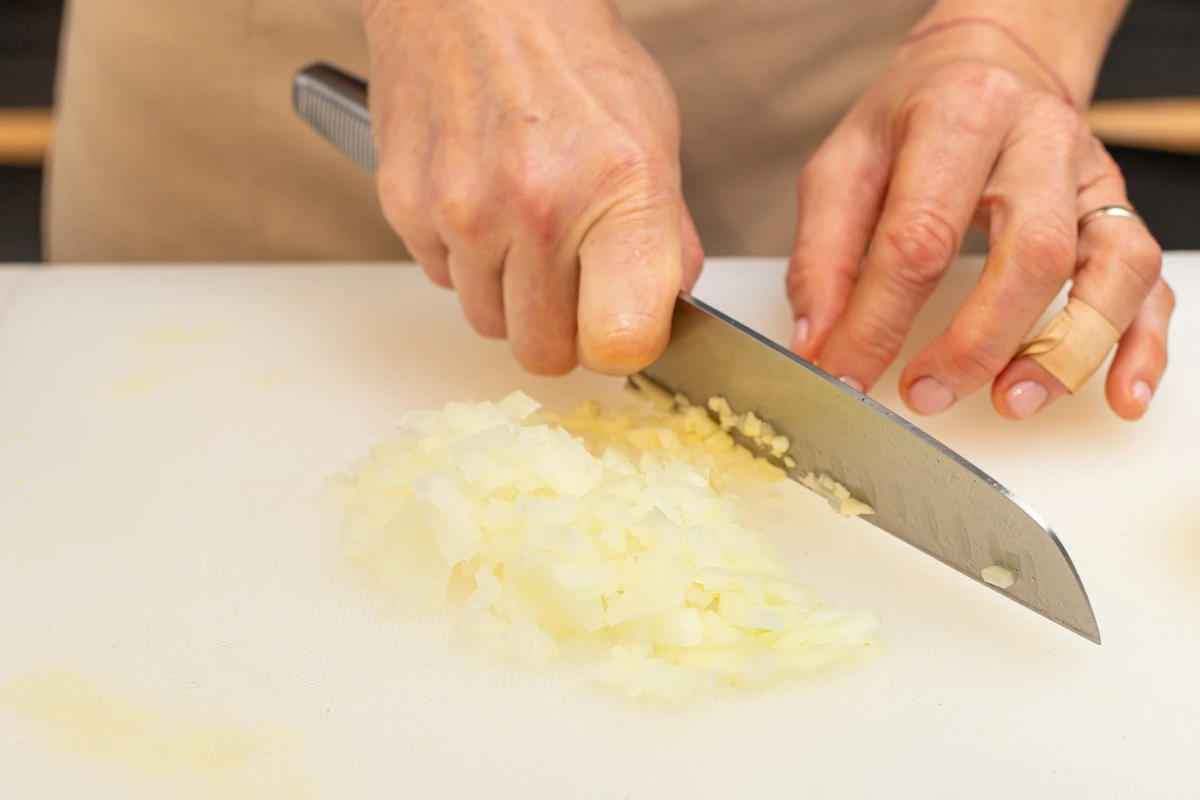 Лук и чеснок помойте, почистите и мелко нарежьте.