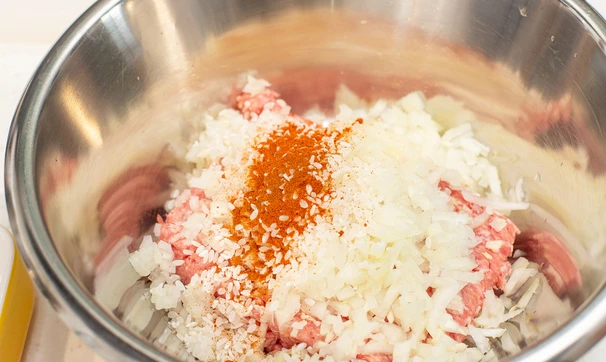 Добавьте паприку и холодную воду, перемешайте.