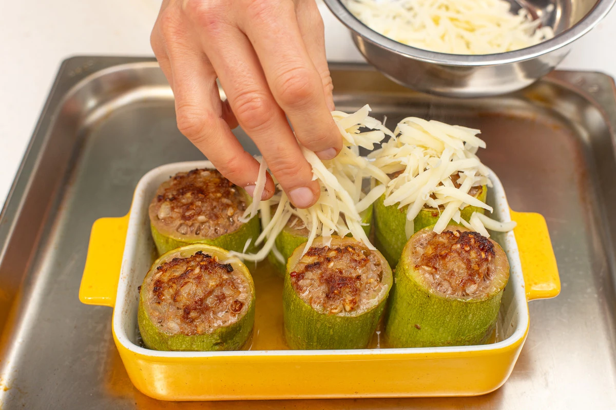 Кабачки с фаршем и сыром готовы.