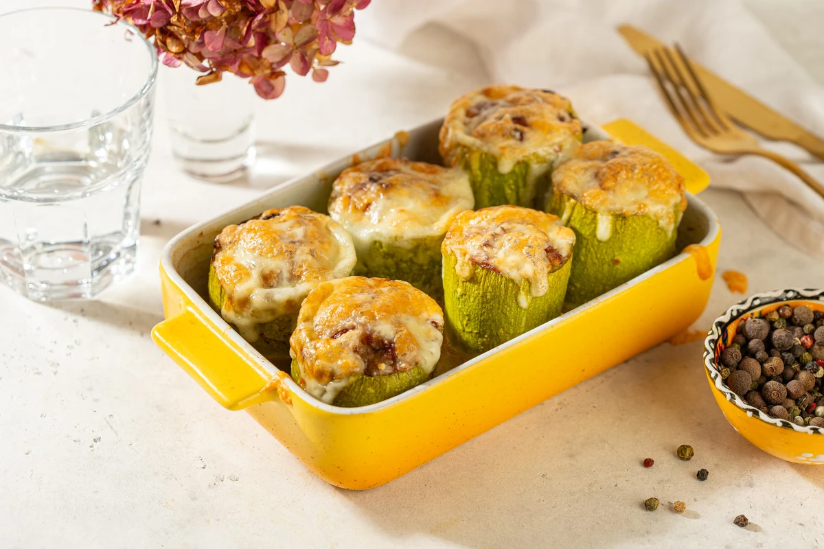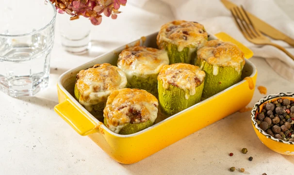 Кабачки в духовке с фаршем и сыром