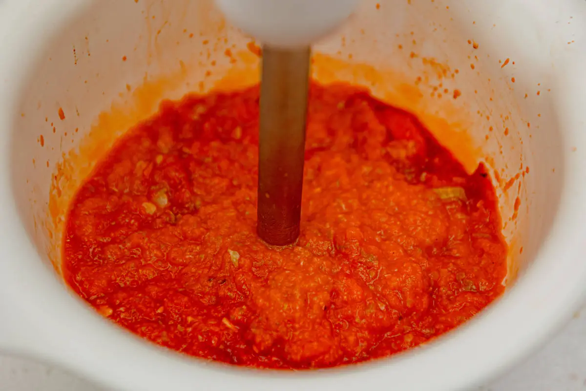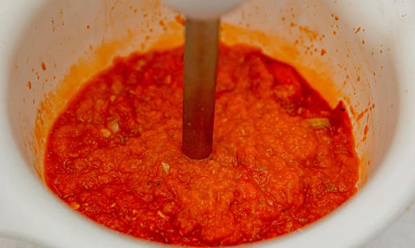 Выньте овощи из пакета и пробейте блендером до однородности.