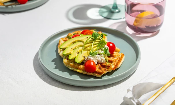 Кабачковые вафли с авокадо и творожным сыром