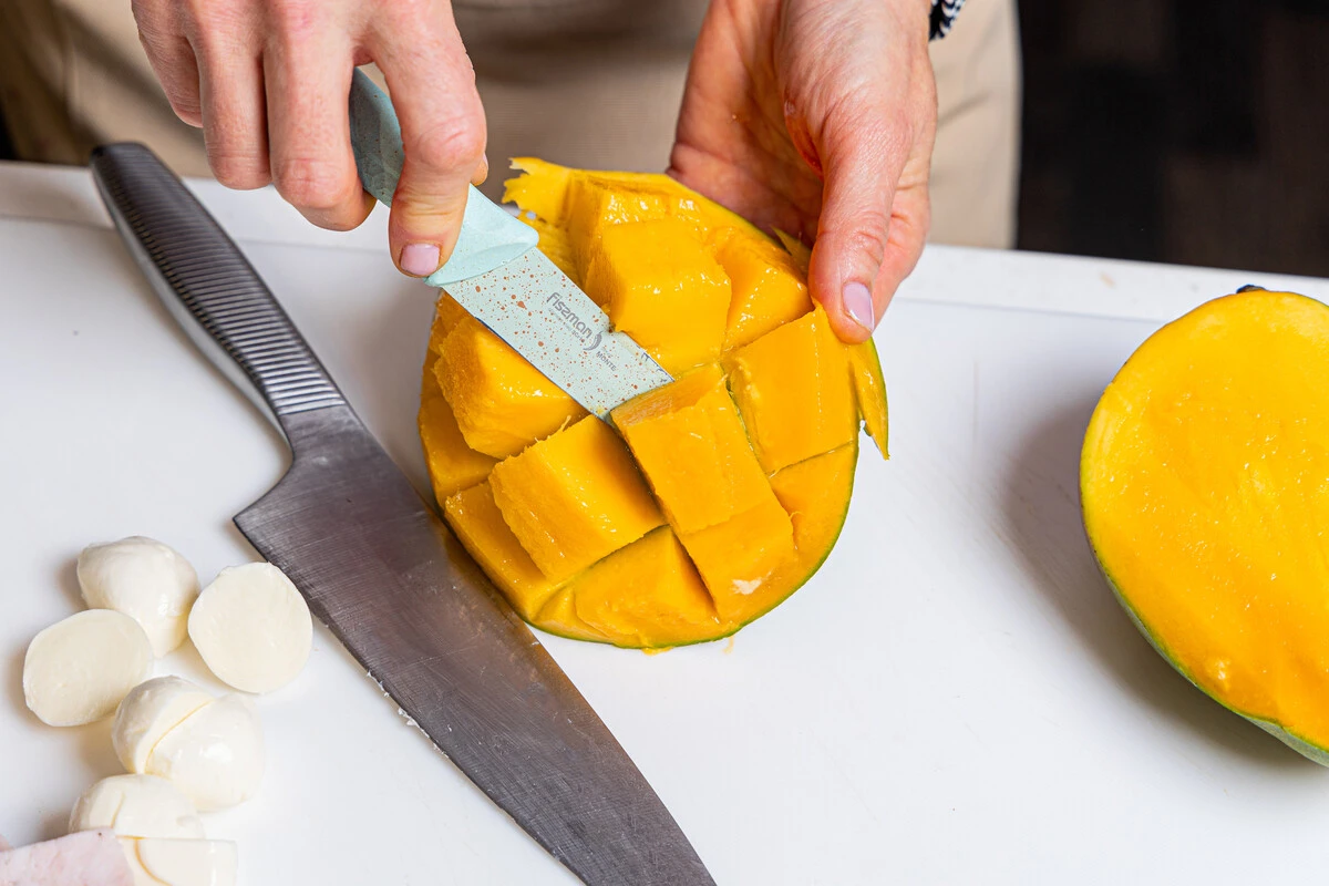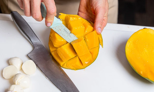 Манго нарежьте крупными кубиками.