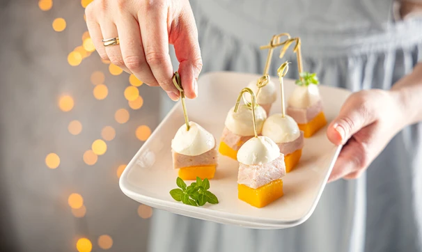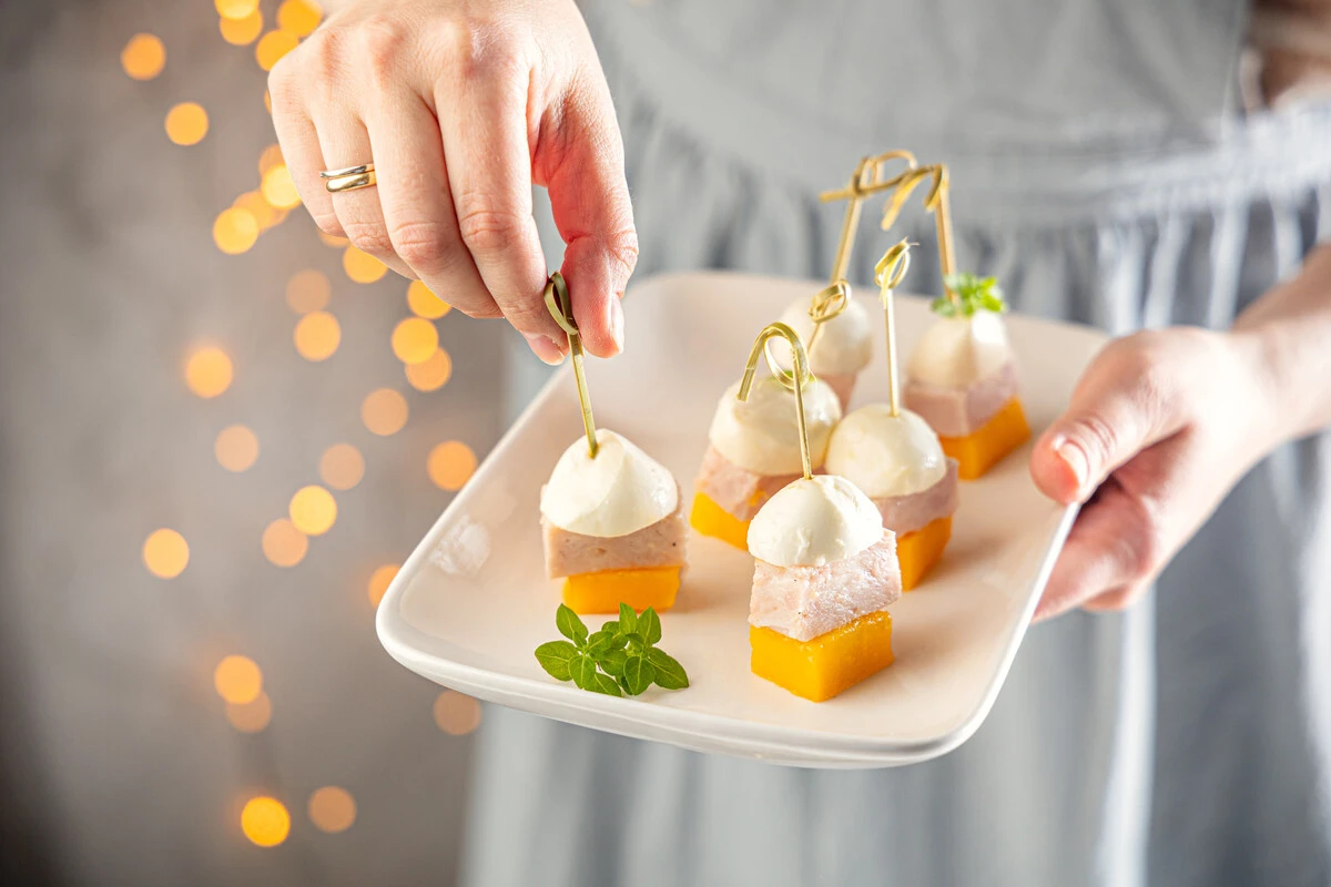 Канапе с манго и моцареллой