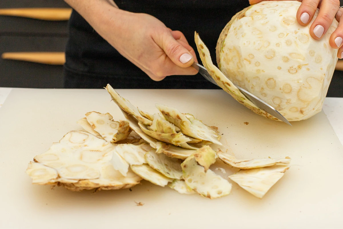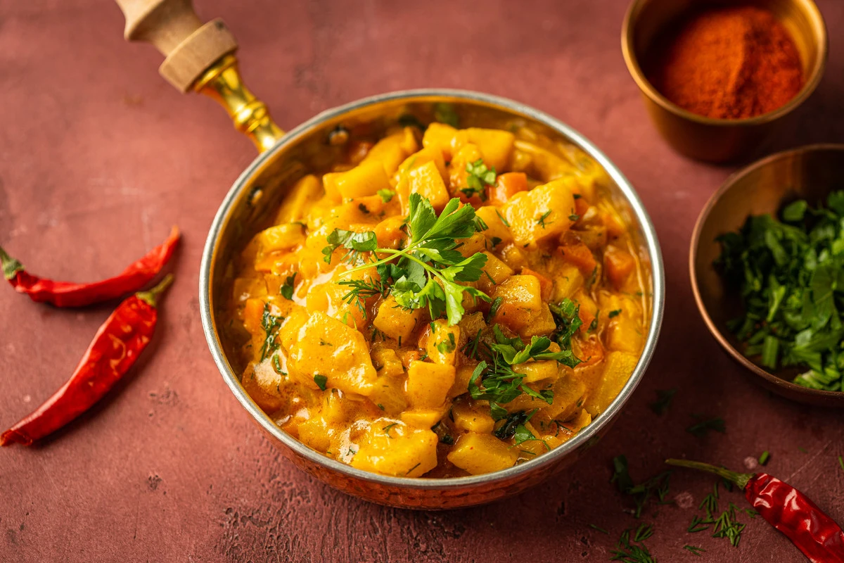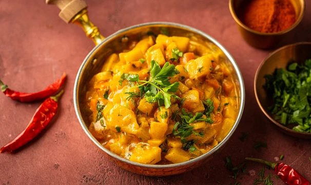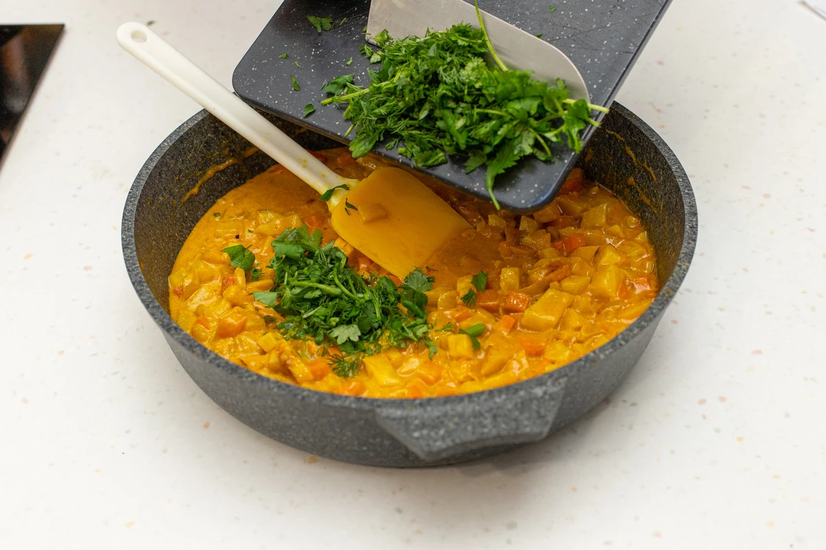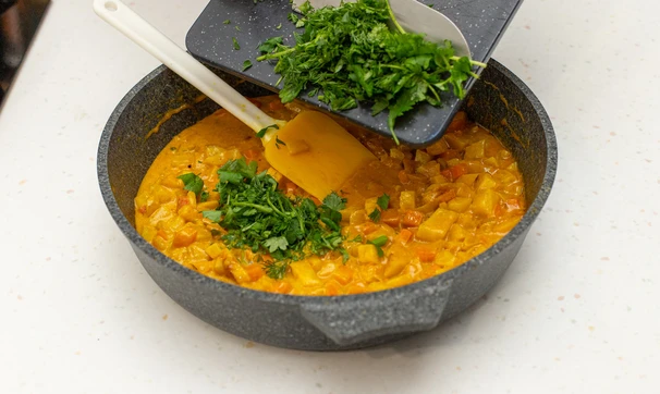 Корневой сельдерей имеет достаточно нежную текстуру и яркий вкус, потому отлично выступает в роли главного и почти единственного ингредиента в овощном карри.