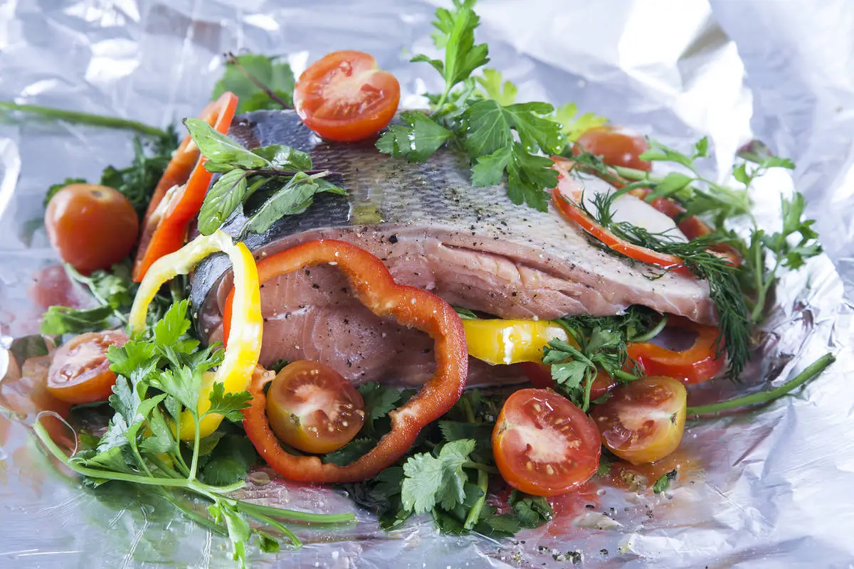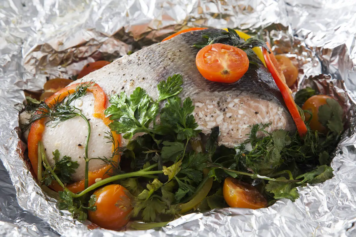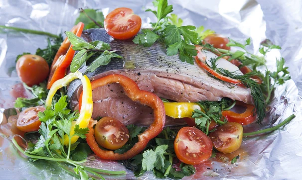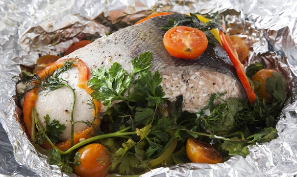 Благодаря фольге рыба получается особенно нежной и сочной, овощи и зелень слегка пропариваются, но не развариваются, а остаются хрустящими — это очень вкусно!
