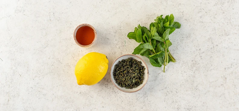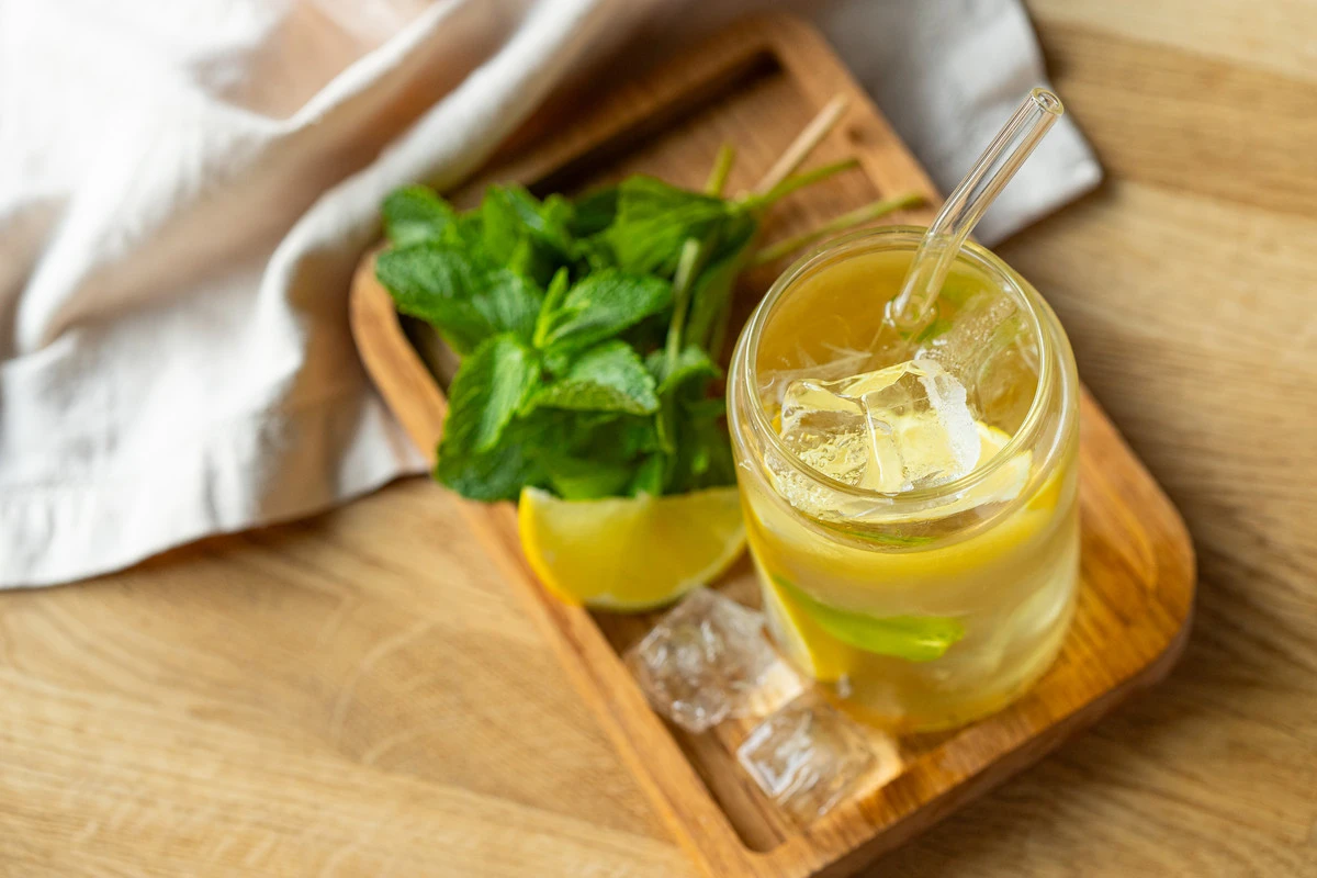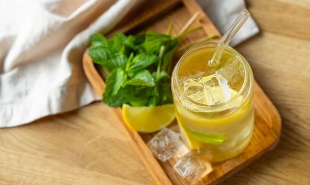 Холодный зелёный чай с лимоном и мятой