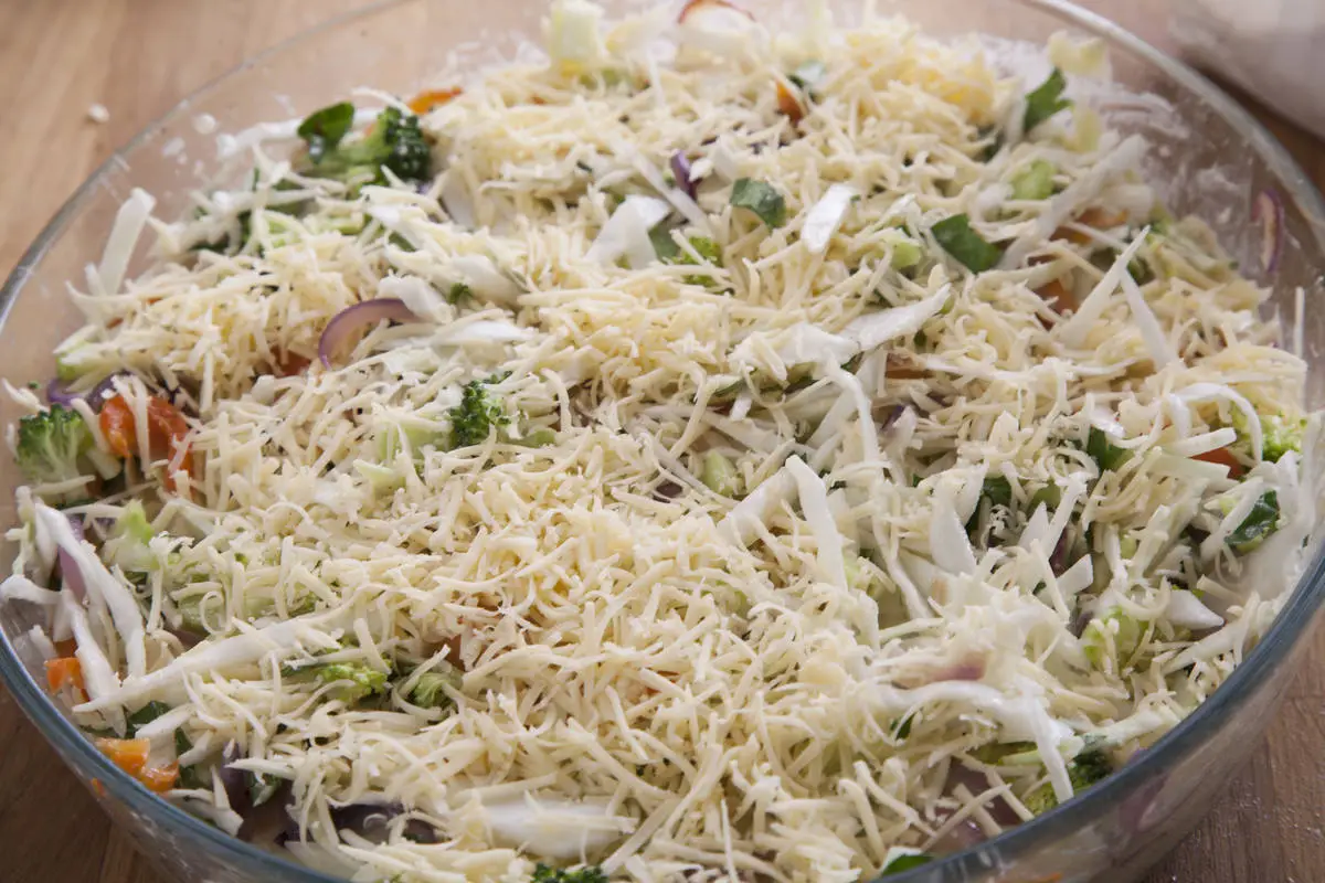 Перемешайте все овощи и выложите в смазанную сливочным маслом форму для запекания.