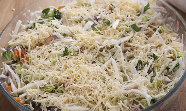 Перемешайте, вылейте на овощи, посыпьте тертым сыром. Запекайте в духовке при 170 С до румяной корочки. Приятного аппетита!