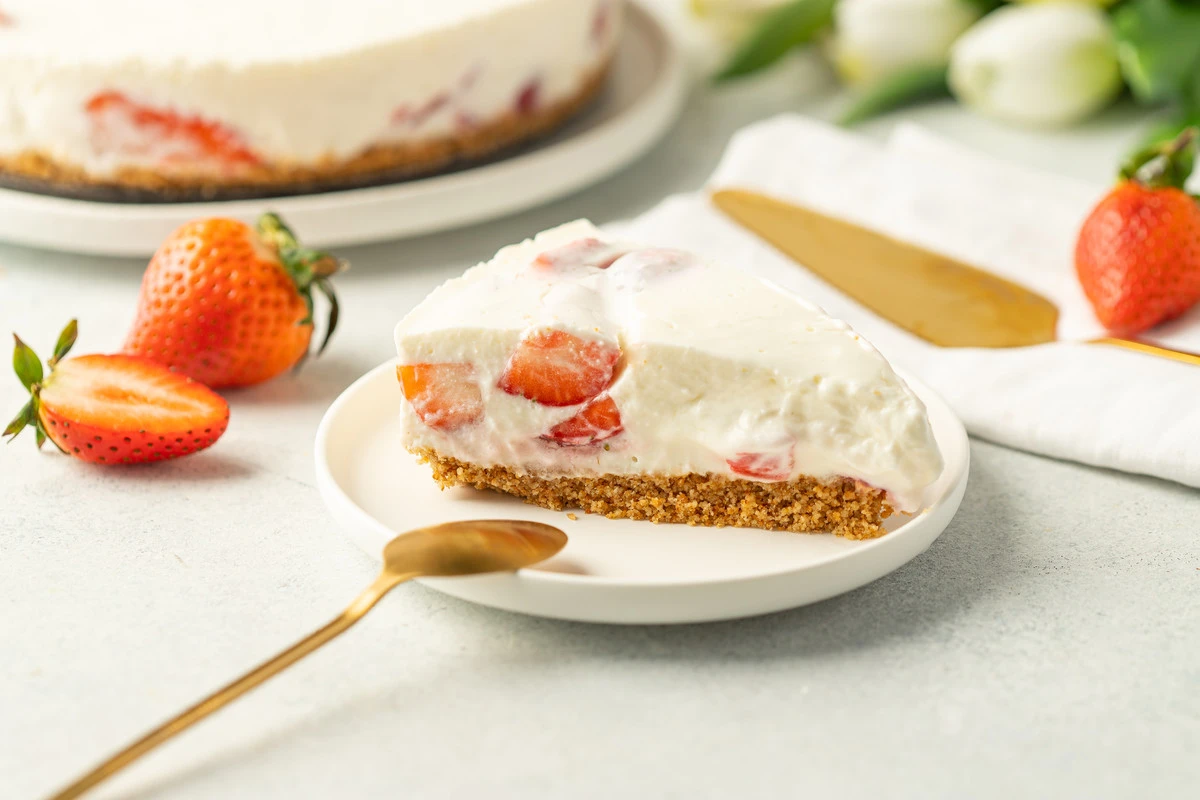 Чизкейк — это что-то на нежном и воздушном. А клубника добавит яркие нотки и превратит его в летний на 100 %.