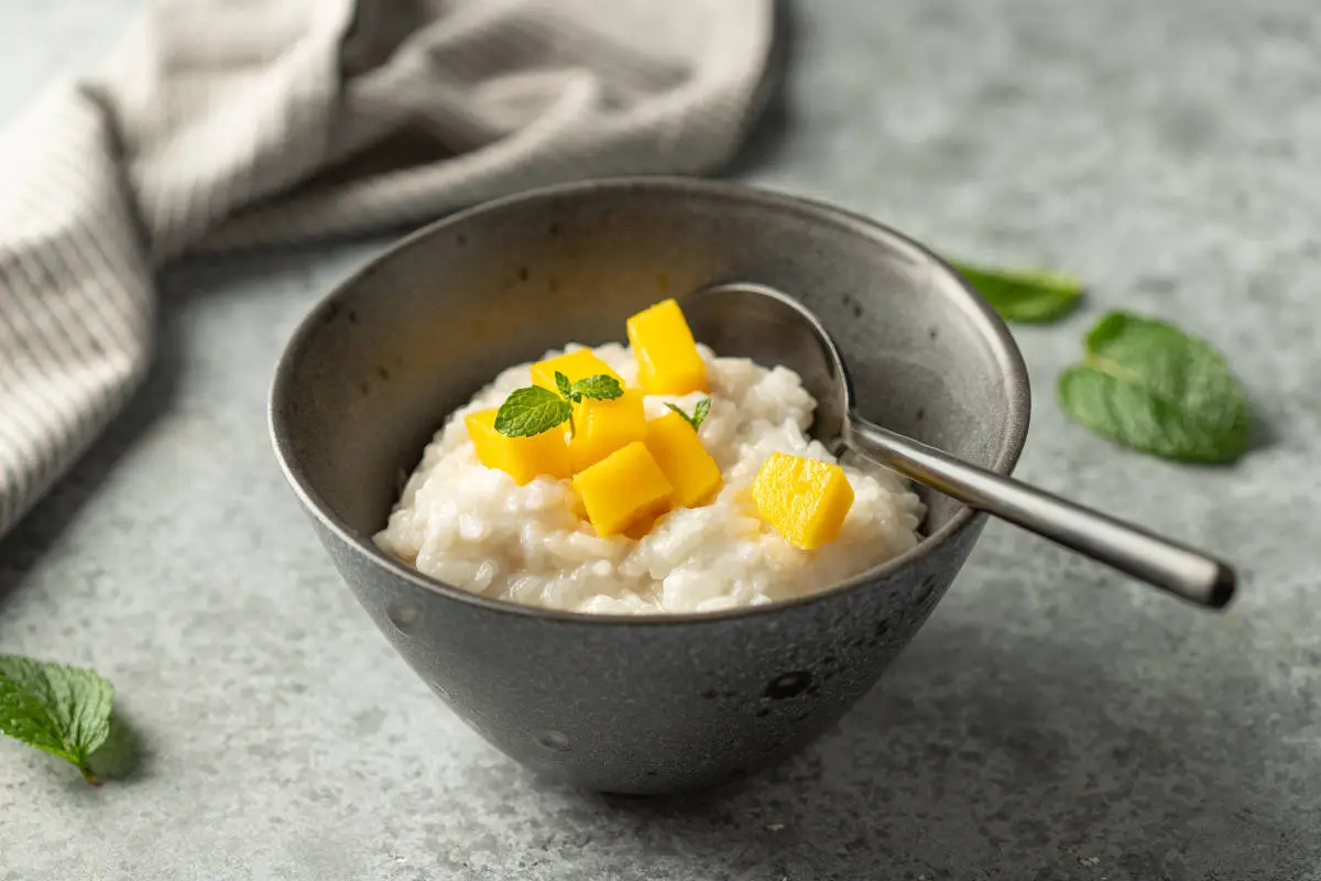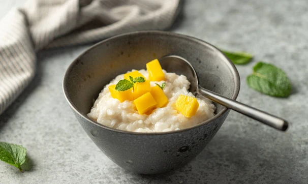 Подавайте кокосовый рис со свежим манго.