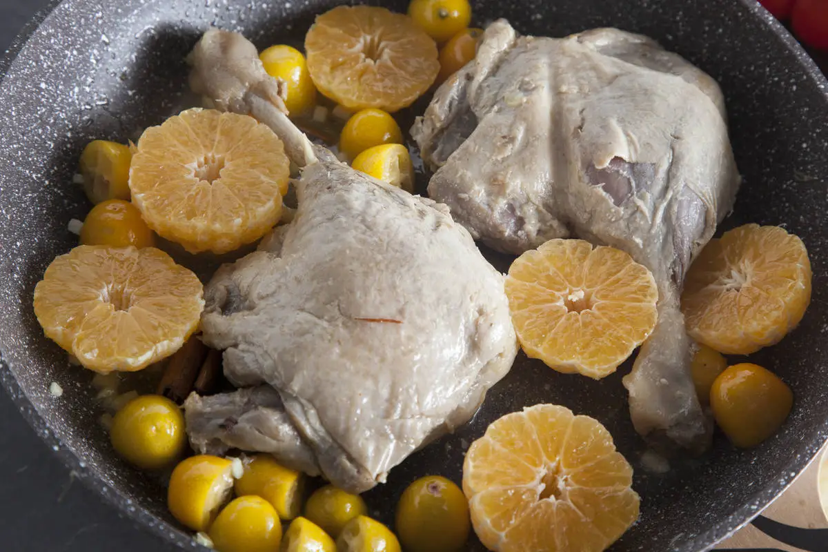 Утиные окорочка конфи – настоящая палочка-выручалочка, если нет времени на запекание целой утки. Их достаточно просто разогреть, ну и приготовить яркий новогодний гарнир из цитрусов, никто и не догадается, что на это блюдо вы потратили не больше получаса.