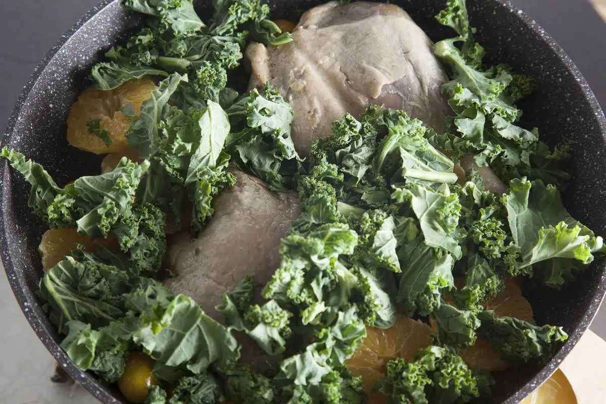 Рецепт «Конфи из утки с кумкватами и кейлом»