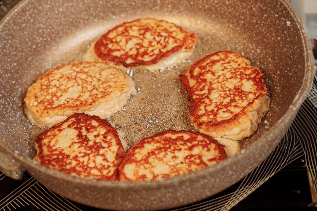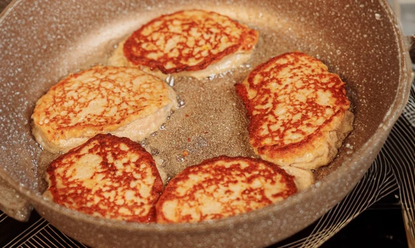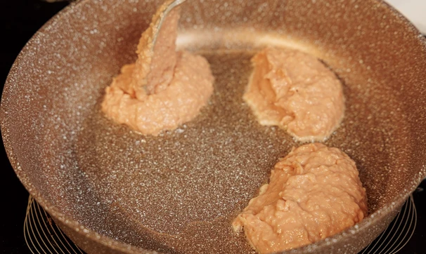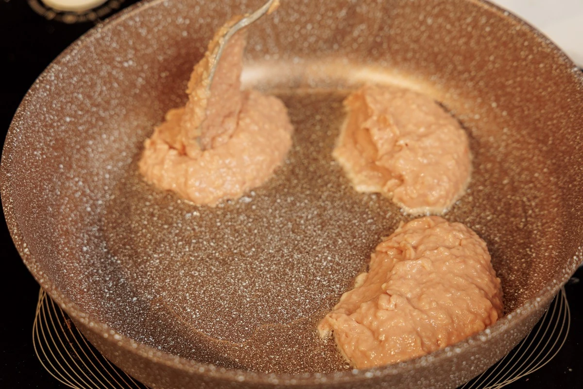 Разогрейте сковороду с растительным маслом. Выкладывайте «тесто» порциями и жарьте котлеты до румяной корочки с двух сторон в течение примерно 10 минут.
