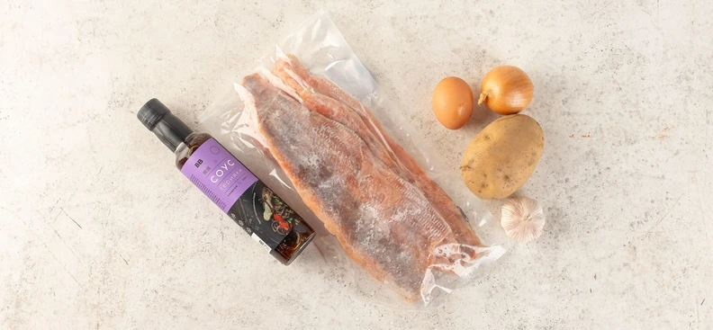 В рецепте используются товары из категорий: Овощи, фрукты, ягоды, зелень; Молочные продукты, яйцо; Масла, соусы, специи, сахар и соль; Рыба, икра и морепродукты