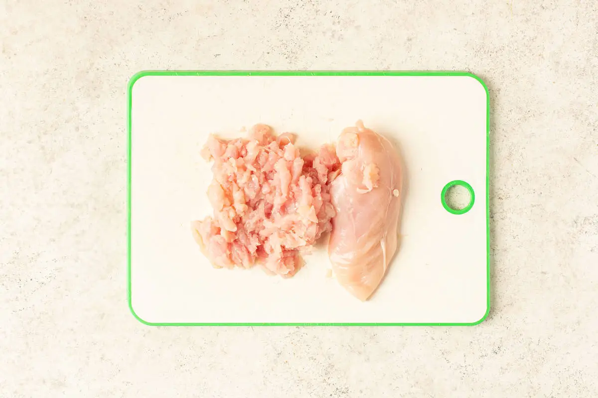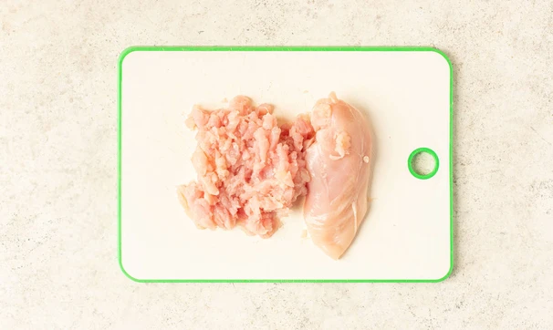 Филе выложите на доску и мелко порубите при помощи большого ножа.