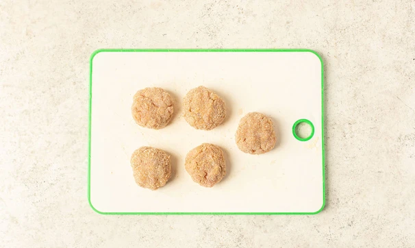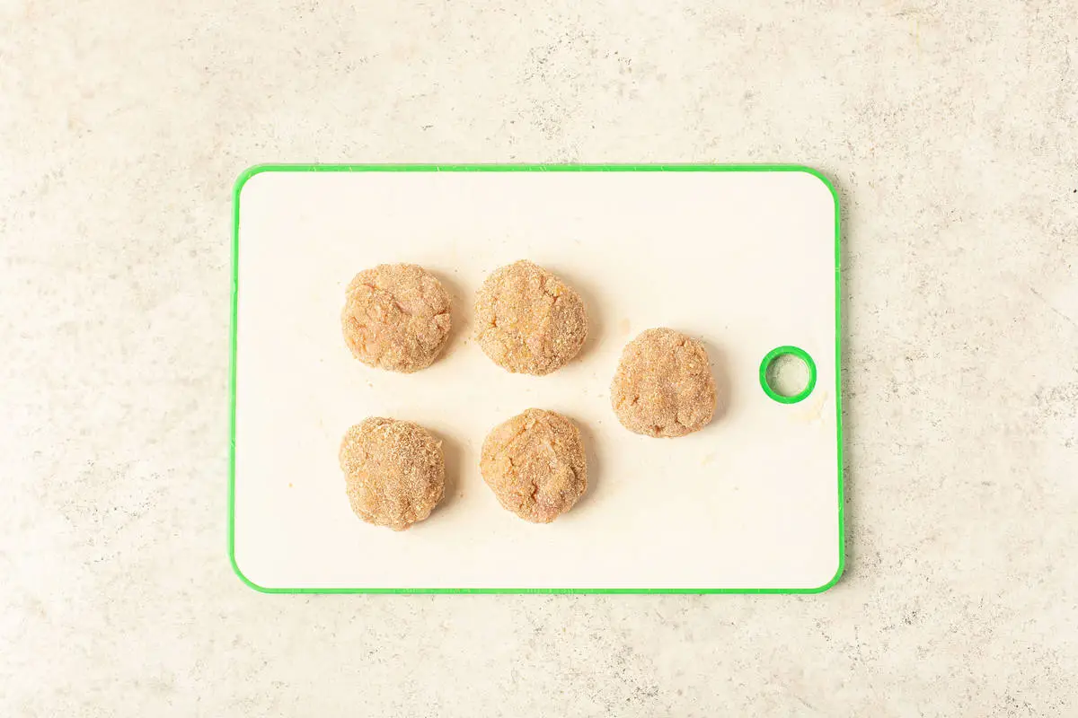 Слепите округлые небольшие котлетки и обваляйте в панировочных сухарях.