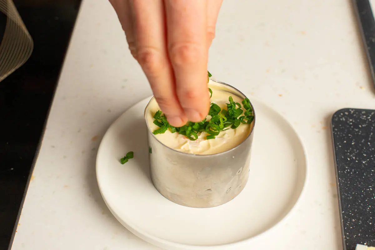 Рекомендуем излишне не приминать слои, сохраняя воздушность. Так салат лучше пропитается, а на вкус будет нежнее.