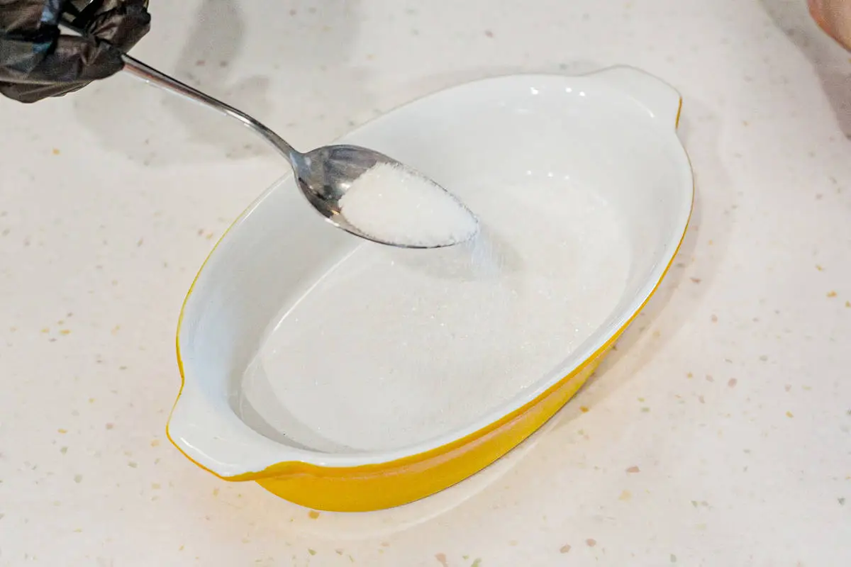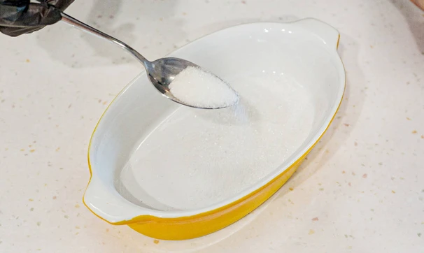 Форму для выпечки смажьте сливочным маслом, насыпьте на дно 1 ст. ложку сахара.