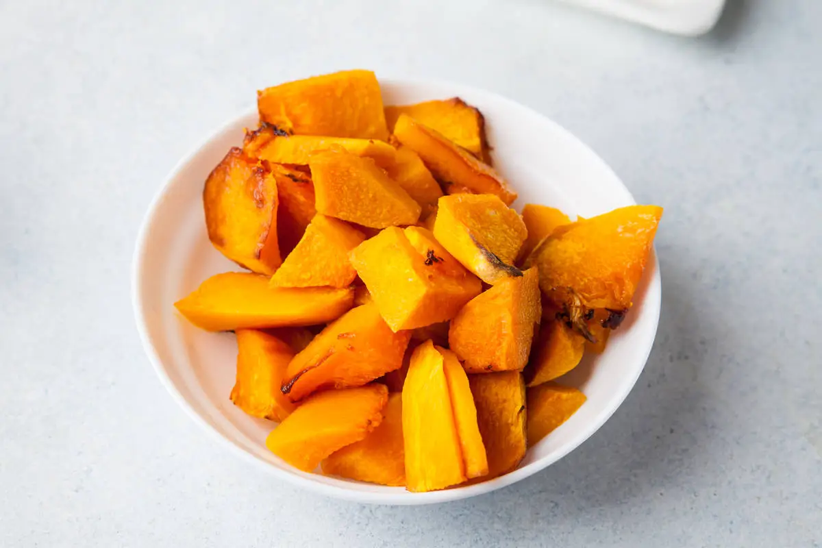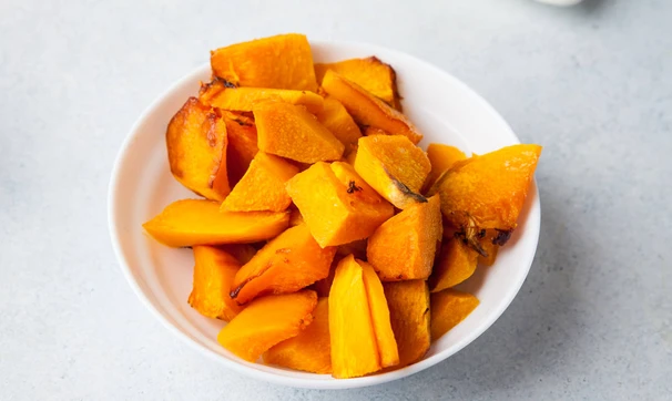 Тыкву нарежьте мелкими кубиками, уложите в форму, сбрызните оливковым маслом. Выдавите в форму чеснок, приправьте орегано и поставьте в духовку, разогретую до 180°С, на 15-20 минут. Или до тех пор, пока тыква не станет мягкой.
