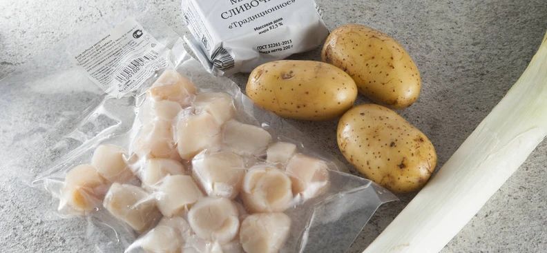 Крем-суп с пореем и гребешками