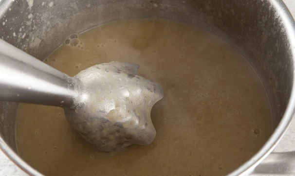 В горячий суп добавьте 4-5 гребешков, пюрируйте при помощи блендера до однородности.