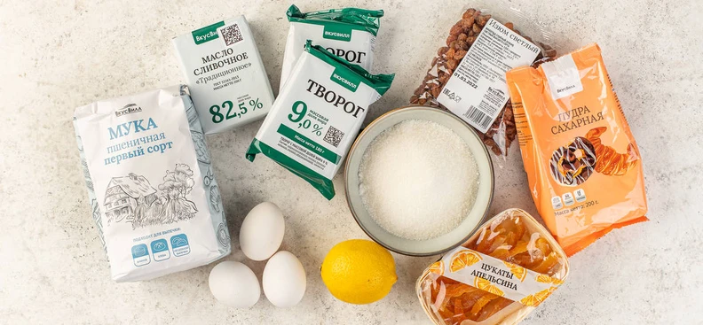Готовим бездрожжевой кулич на основе творога с добавлением апельсиновых цукатов и изюма.