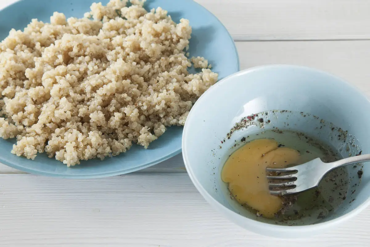 Грудки порежьте небольшими кубиками, обмакните в яичную смесь, а затем обваляйте в киноа.